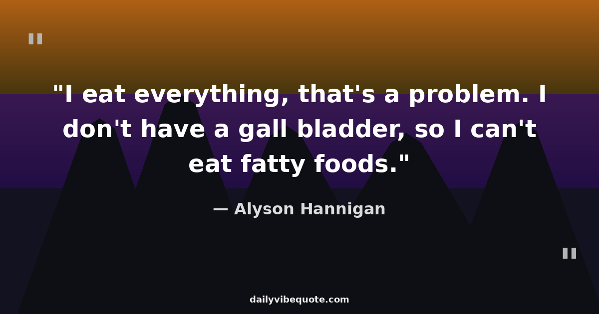 "I eat everything, that's a problem. I don't have a gall bladder, so I can't eat fatty foods."
