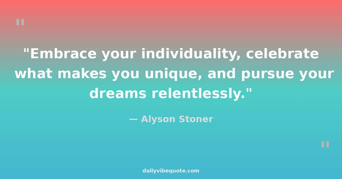 "Embrace your individuality, celebrate what makes you unique, and pursue your dreams relentlessly."