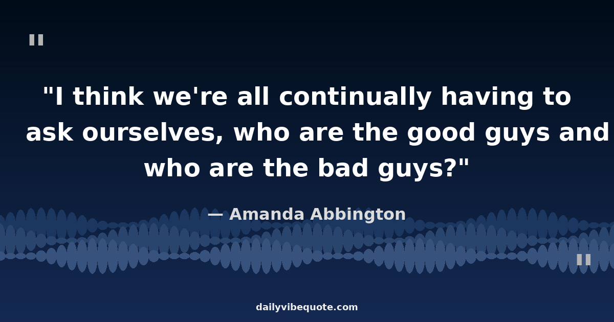 "I think we're all continually having to ask ourselves, who are the good guys and who are the bad guys?"