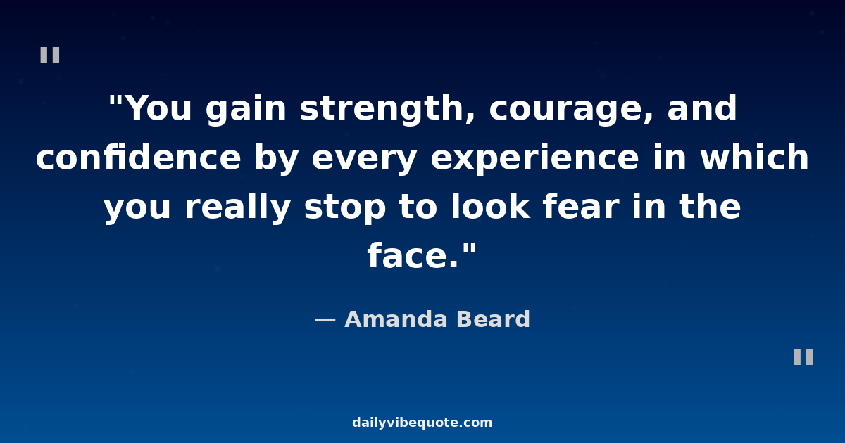 "You gain strength, courage, and confidence by every experience in which you really stop to look fear in the face."