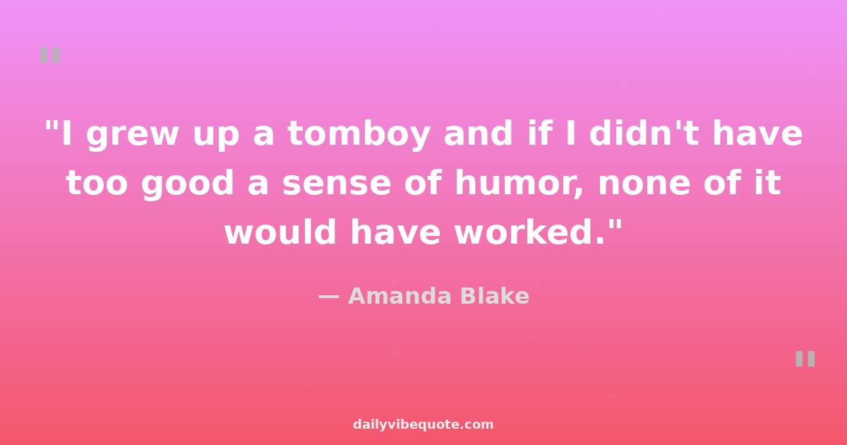 "I grew up a tomboy and if I didn't have too good a sense of humor, none of it would have worked."