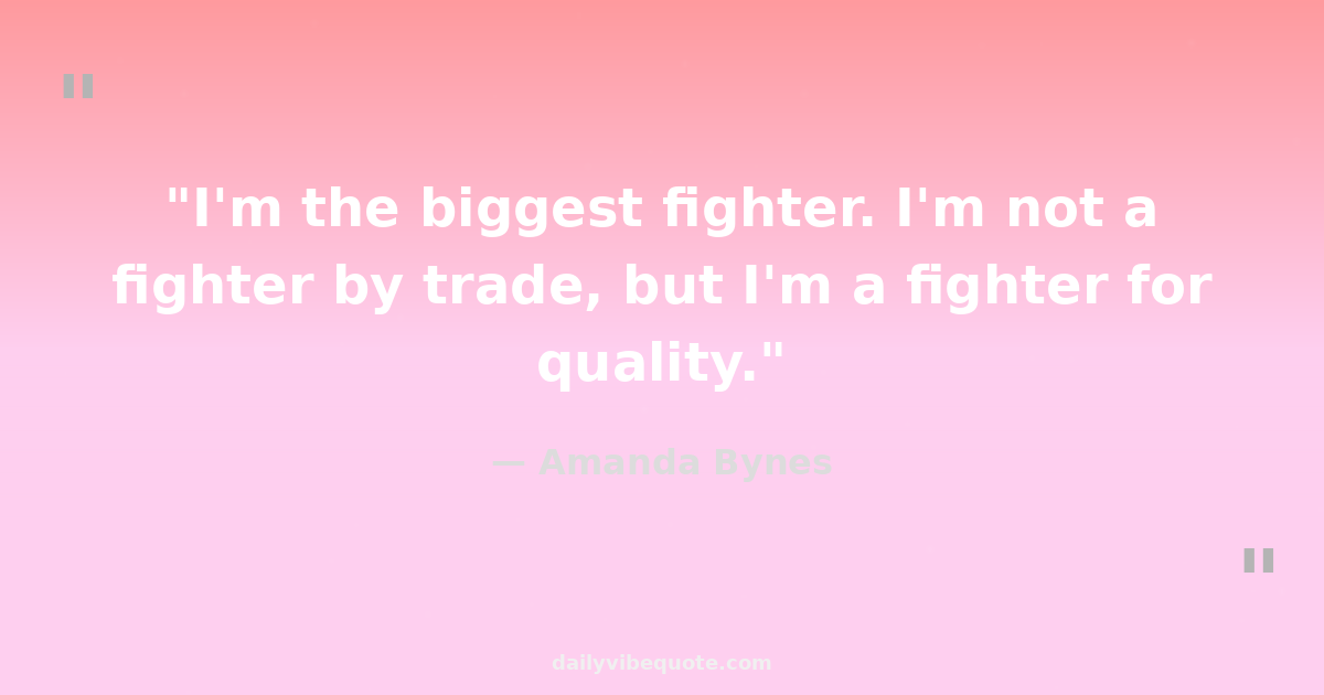"I'm the biggest fighter. I'm not a fighter by trade, but I'm a fighter for quality."