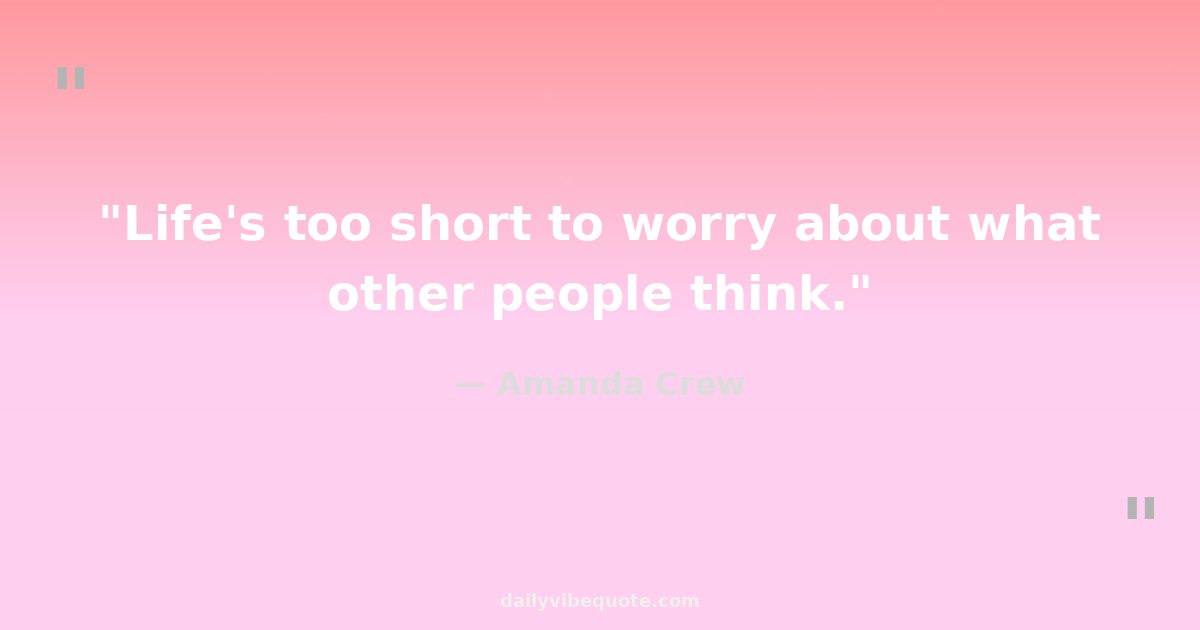 "Life's too short to worry about what other people think."