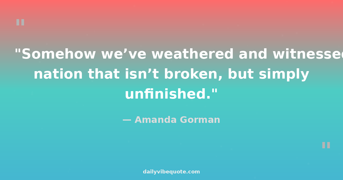 "Somehow we’ve weathered and witnessed a nation that isn’t broken, but simply unfinished."