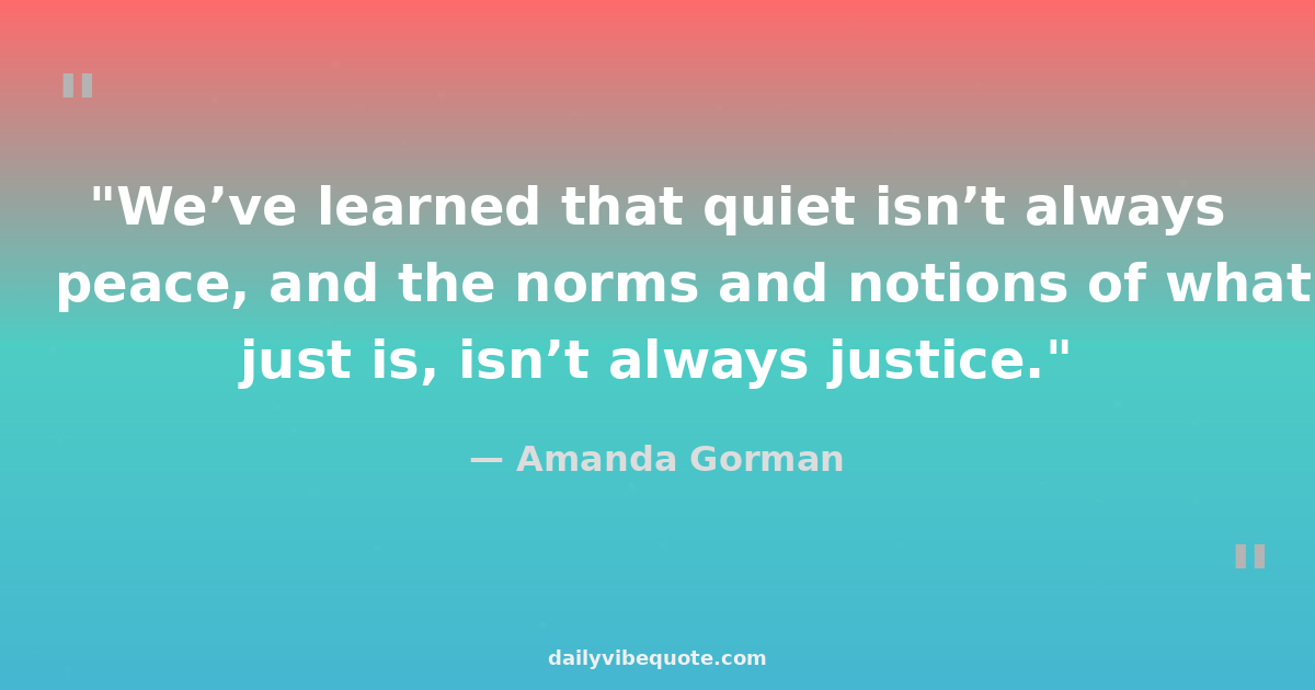 "We’ve learned that quiet isn’t always peace, and the norms and notions of what just is, isn’t always justice."