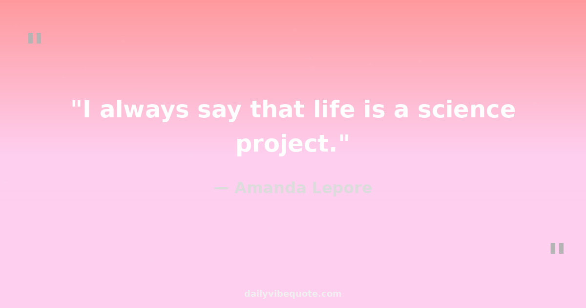 "I always say that life is a science project."