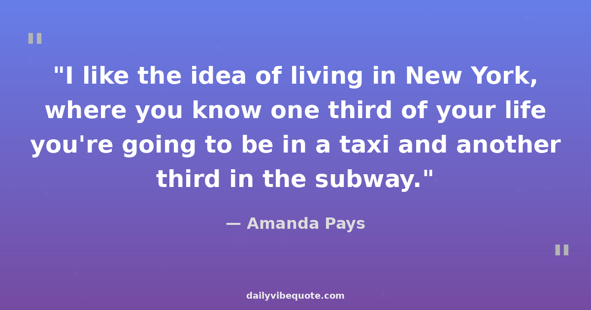 "I like the idea of living in New York, where you know one third of your life you're going to be in a taxi and another third in the subway."