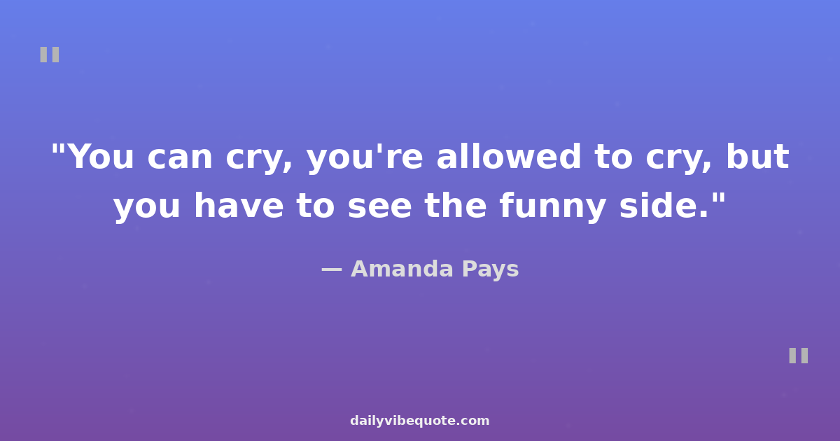 "You can cry, you're allowed to cry, but you have to see the funny side."