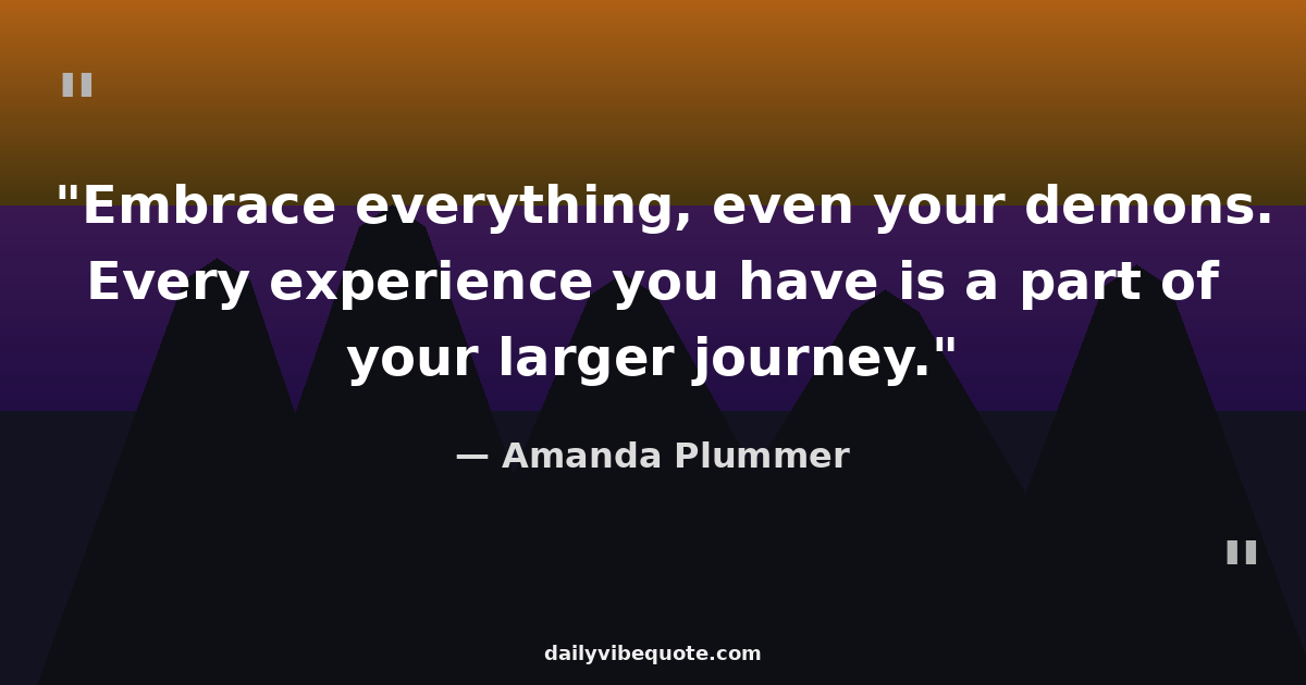 "Embrace everything, even your demons. Every experience you have is a part of your larger journey."