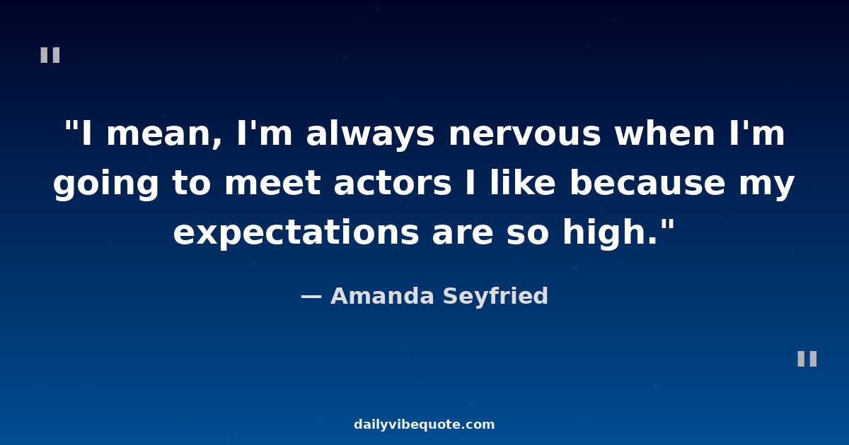 "I mean, I'm always nervous when I'm going to meet actors I like because my expectations are so high."