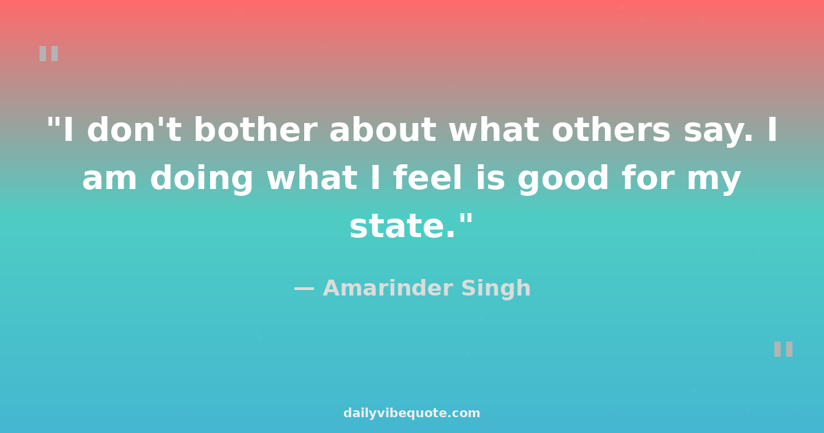 "I don't bother about what others say. I am doing what I feel is good for my state."