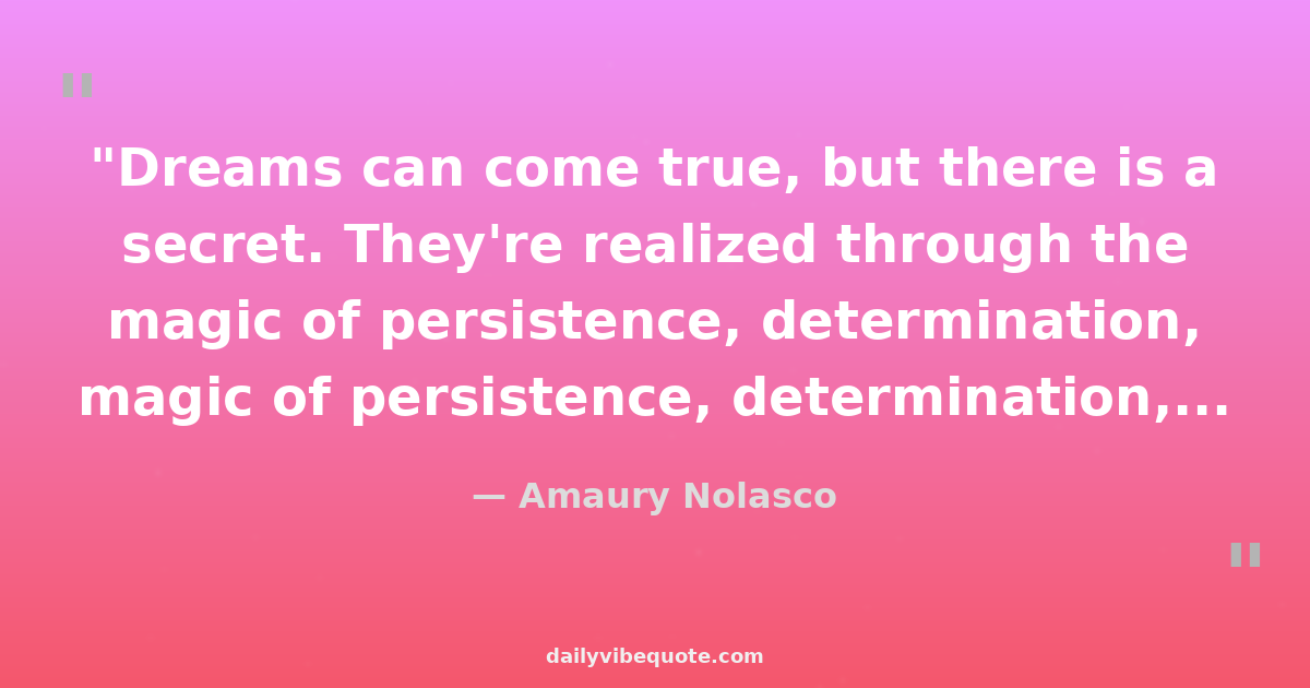 "Dreams can come true, but there is a secret. They're realized through the magic of persistence, determination, commitment, passion, practice, focus and hard work. They happen a step at a time, manifested over years, not weeks."