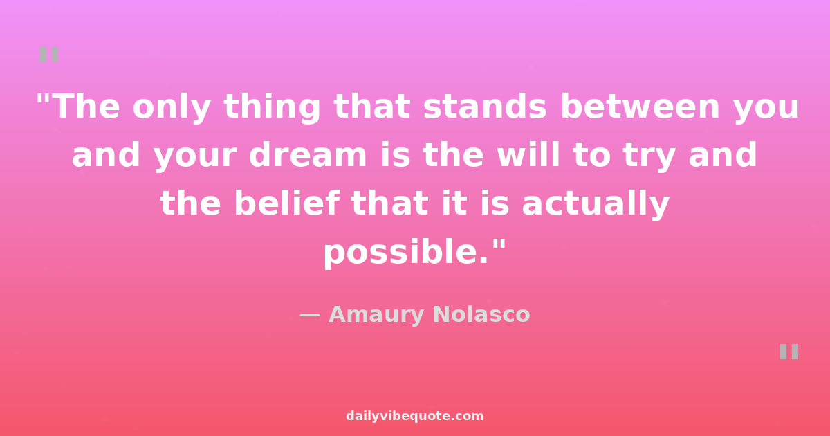 "The only thing that stands between you and your dream is the will to try and the belief that it is actually possible."