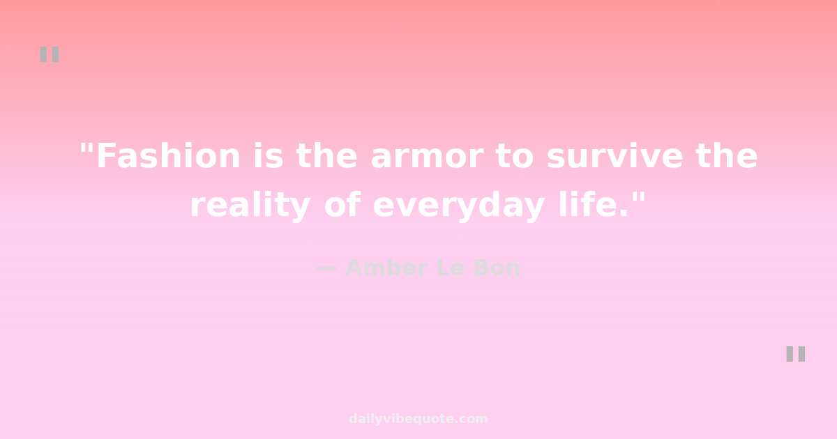 "Fashion is the armor to survive the reality of everyday life."