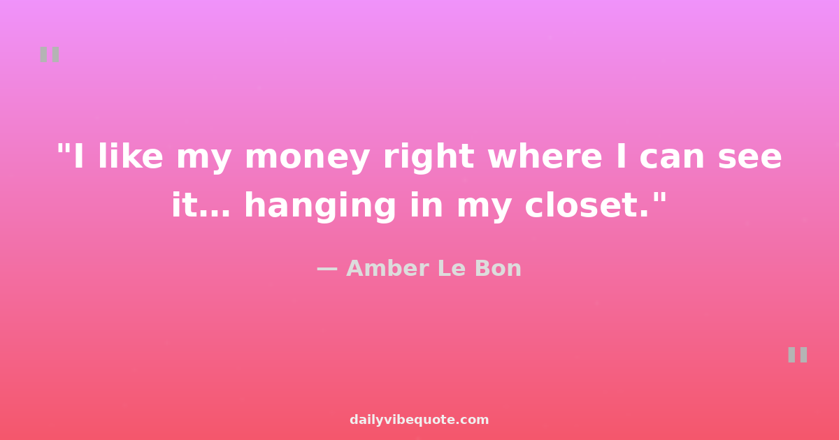 "I like my money right where I can see it… hanging in my closet."
