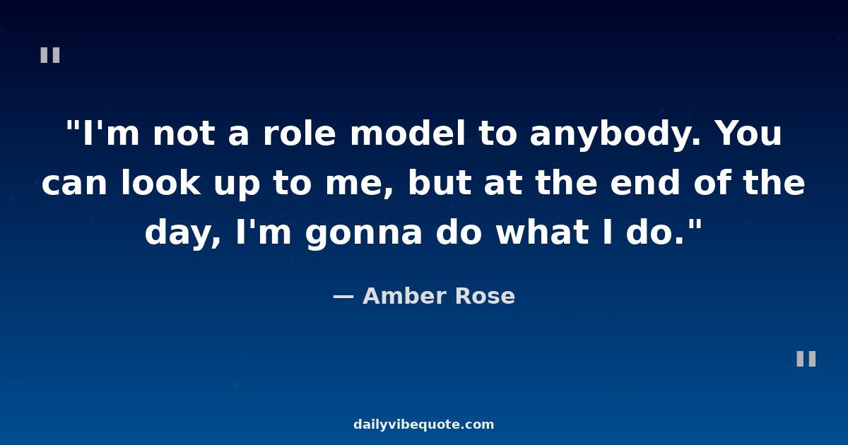 "I'm not a role model to anybody. You can look up to me, but at the end of the day, I'm gonna do what I do."