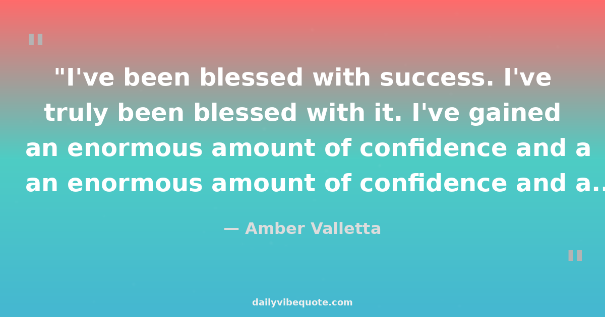 "I've been blessed with success. I've truly been blessed with it. I've gained an enormous amount of confidence and a different sense of self. Success and the money have allowed me to do the things I want to do."