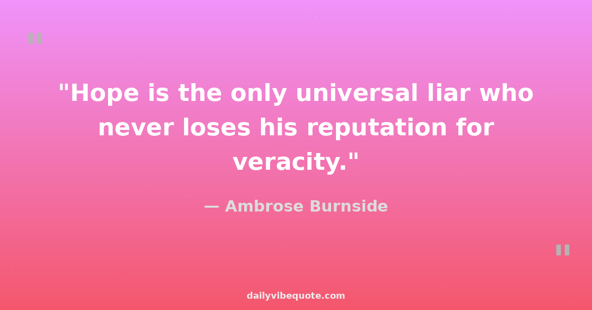 "Hope is the only universal liar who never loses his reputation for veracity."