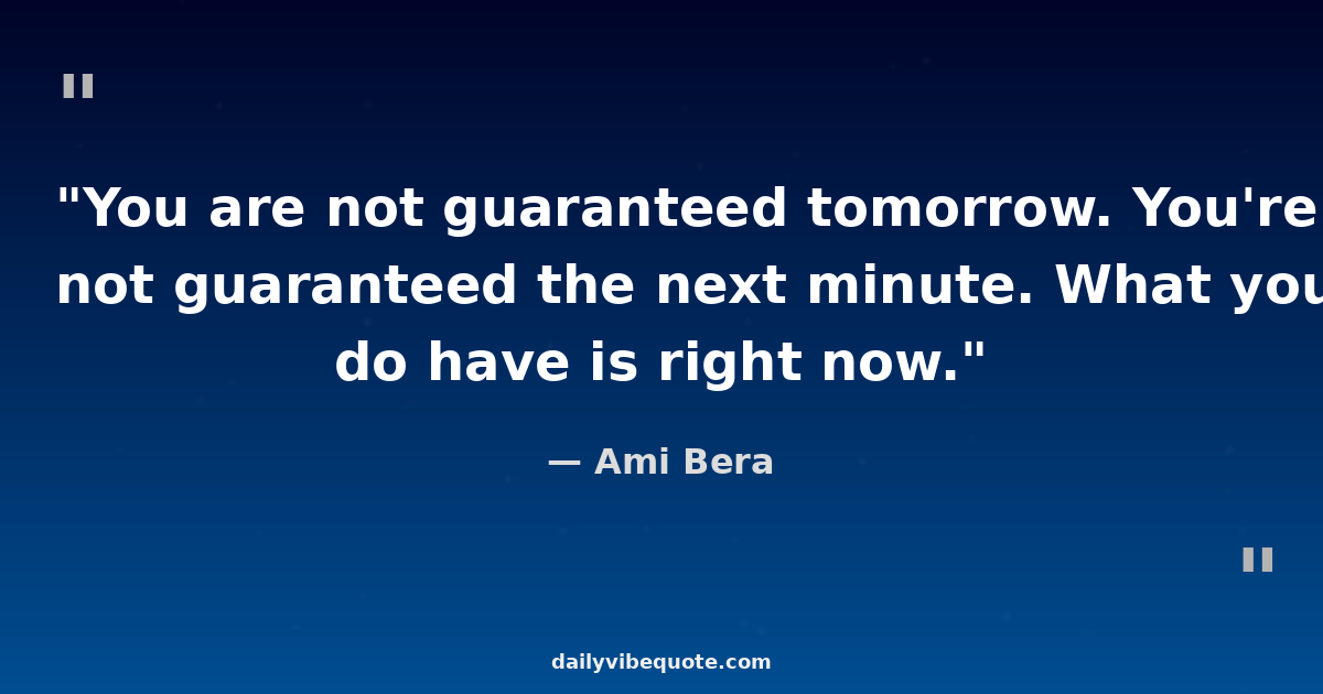 "You are not guaranteed tomorrow. You're not guaranteed the next minute. What you do have is right now."