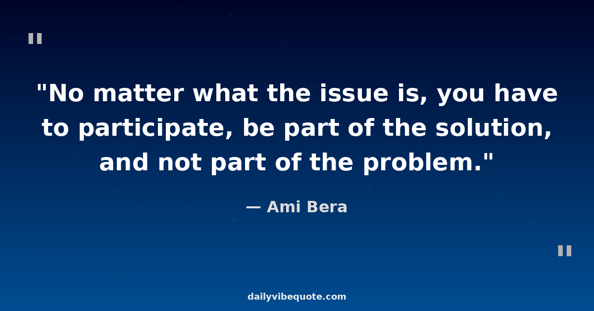 "No matter what the issue is, you have to participate, be part of the solution, and not part of the problem."