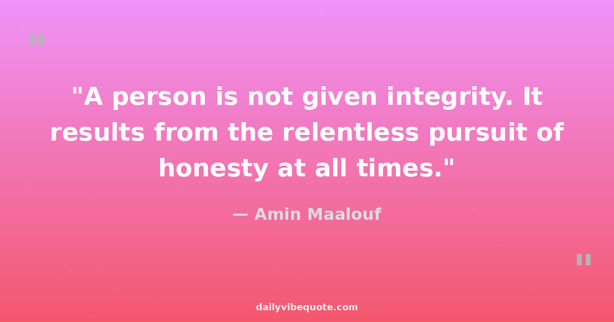 "A person is not given integrity. It results from the relentless pursuit of honesty at all times."