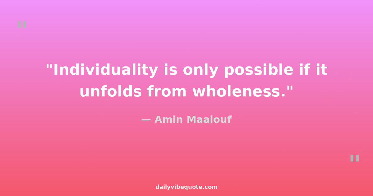 "Individuality is only possible if it unfolds from wholeness."