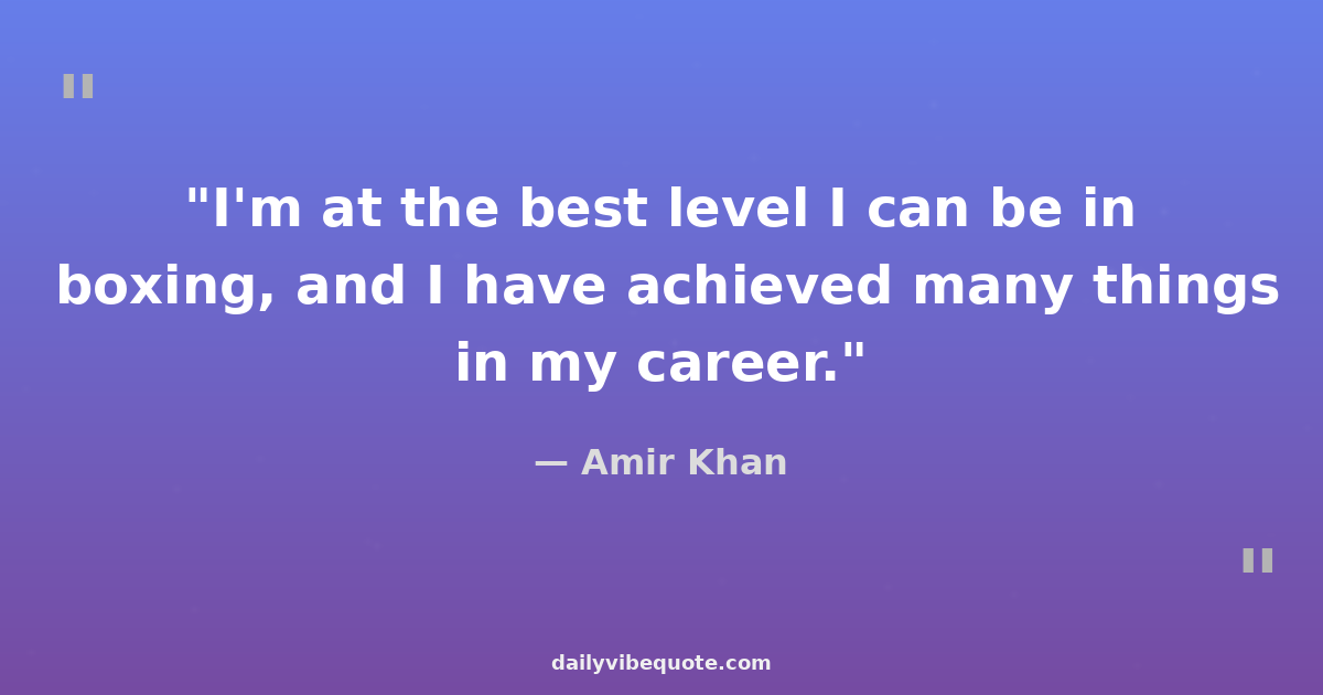 "I'm at the best level I can be in boxing, and I have achieved many things in my career."