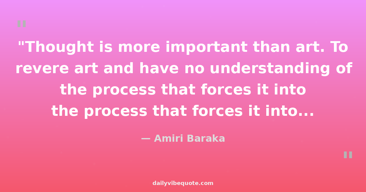 "Thought is more important than art. To revere art and have no understanding of the process that forces it into existence, is finally not even to understand what art is."