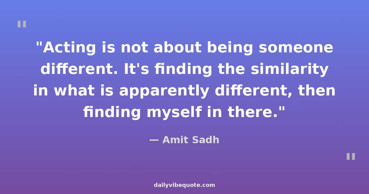 "Acting is not about being someone different. It's finding the similarity in what is apparently different, then finding m..."