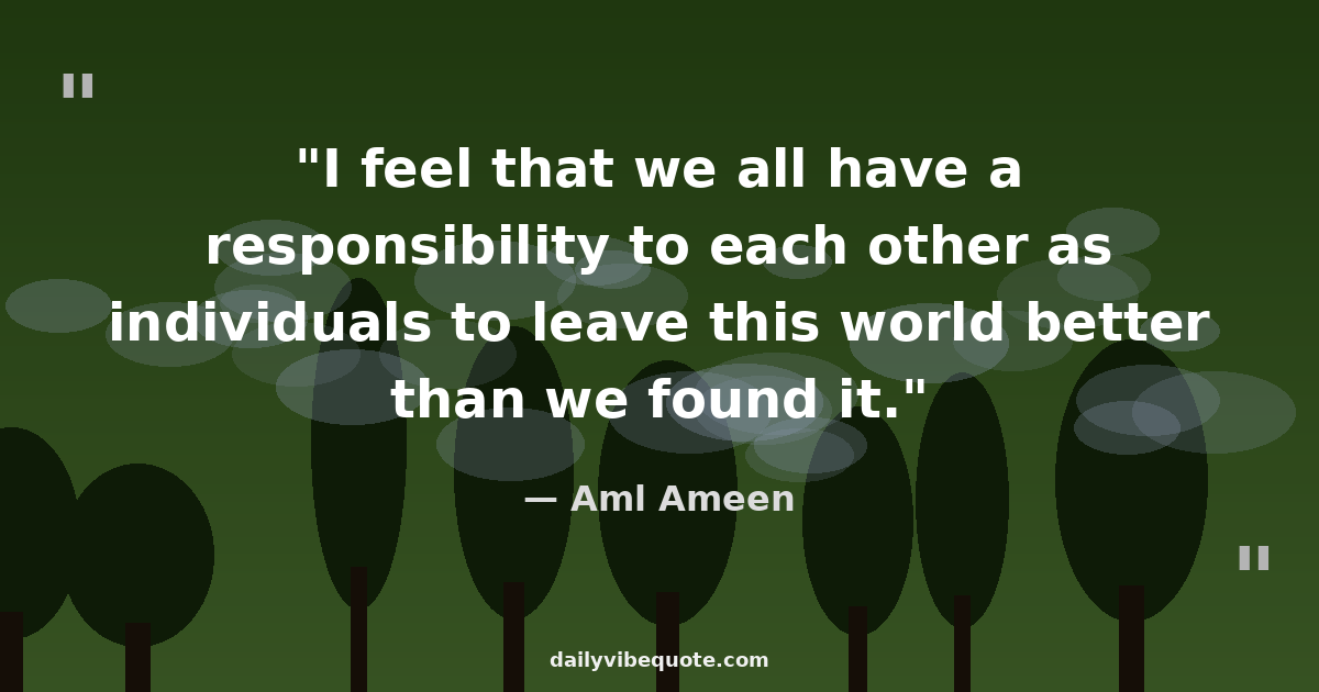"I feel that we all have a responsibility to each other as individuals to leave this world better than we found it."