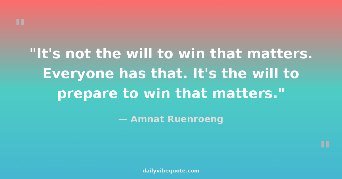 "It's not the will to win, but the will to prepare to win that makes the difference."