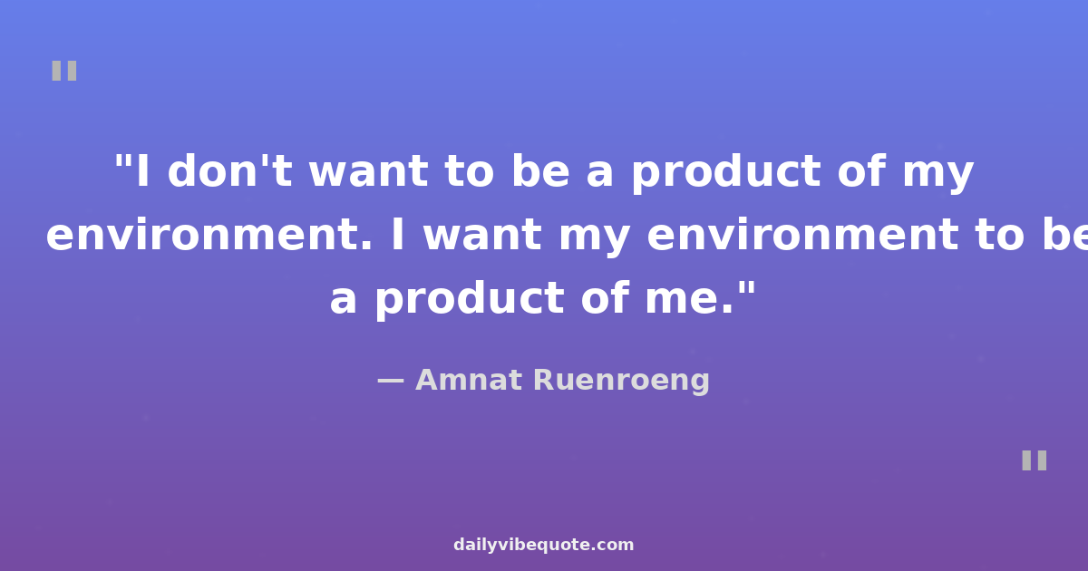 "I don't want to be a product of my environment. I want my environment to be a product of me."