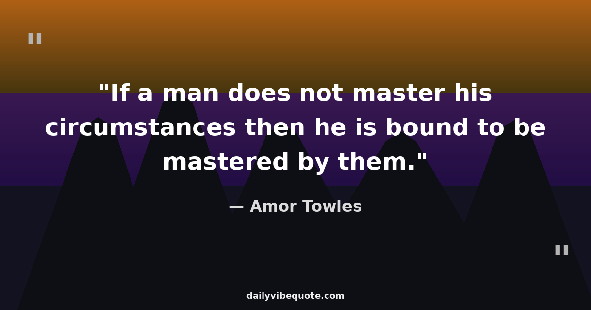 "If a man does not master his circumstances then he is bound to be mastered by them."