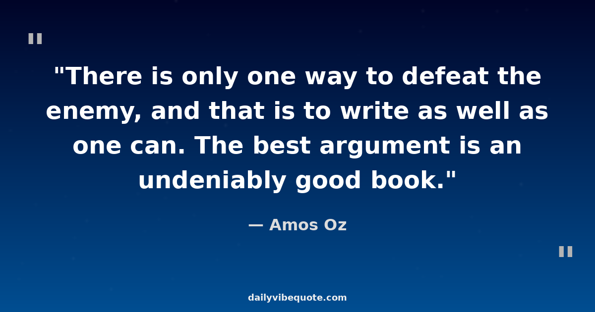 "There is only one way to defeat the enemy, and that is to write as well as one can. The best argument is an undeniably good book."