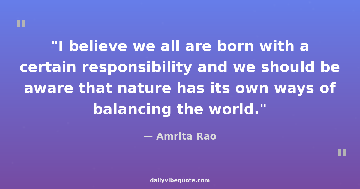 "I believe we all are born with a certain responsibility and we should be aware that nature has its own ways of balancing the world."