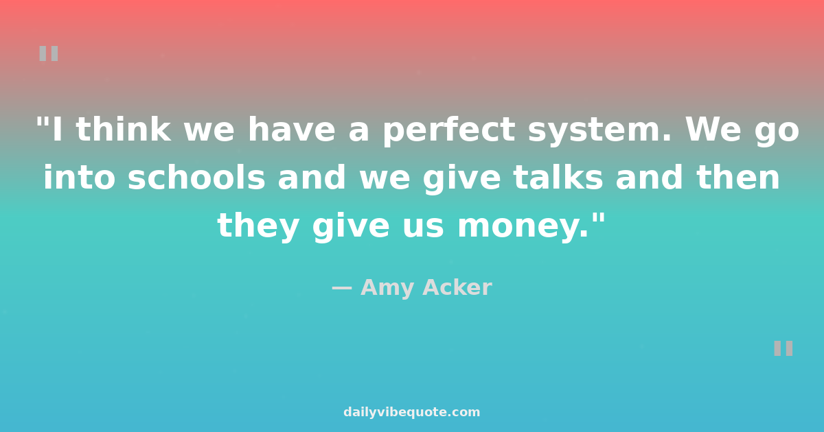 "I think we have a perfect system. We go into schools and we give talks and then they give us money."