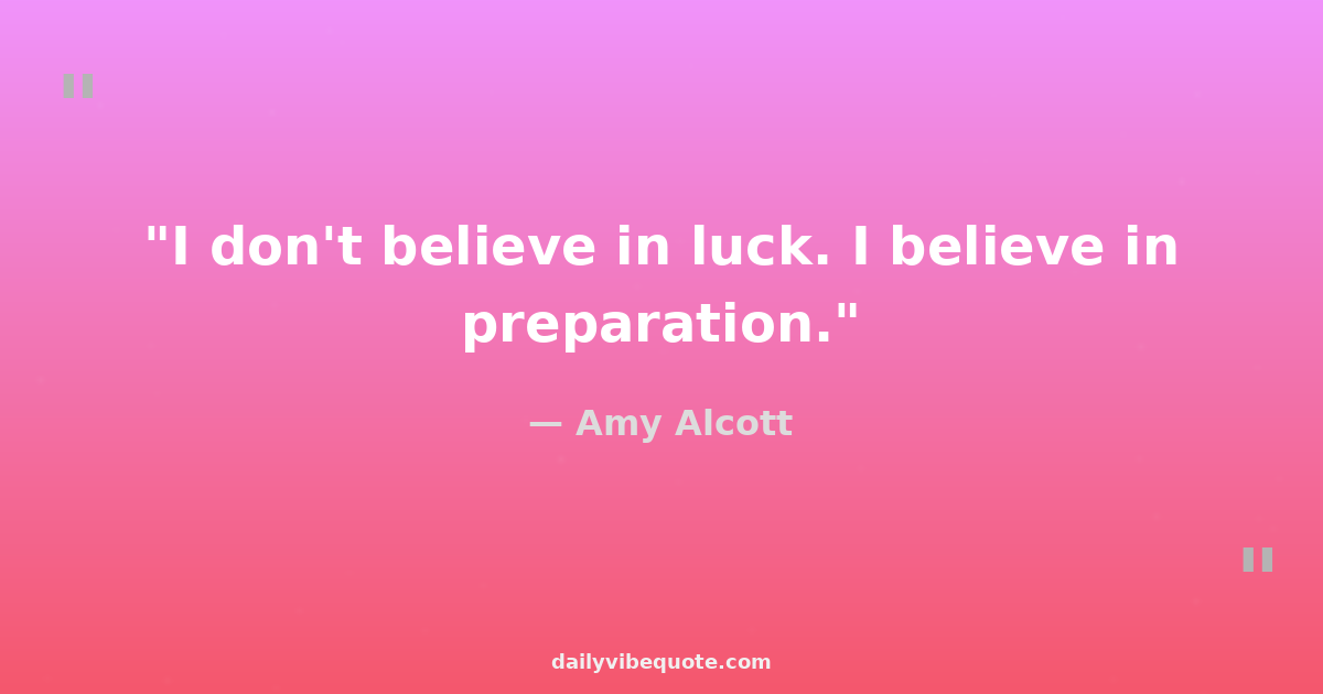 "I don't believe in luck. I believe in preparation."