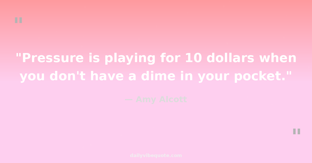 "Pressure is playing for 10 dollars when you don't have a dime in your pocket."