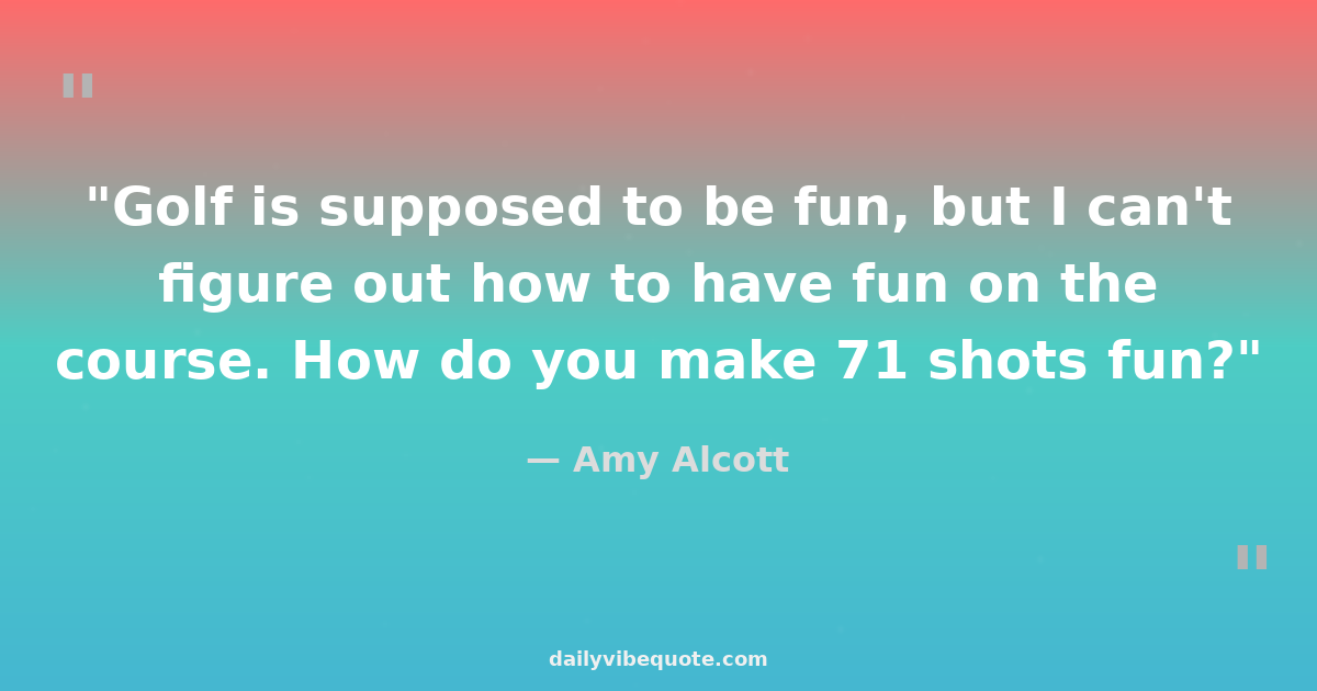 "Golf is supposed to be fun, but I can't figure out how to have fun on the course. How do you make 71 shots fun?"
