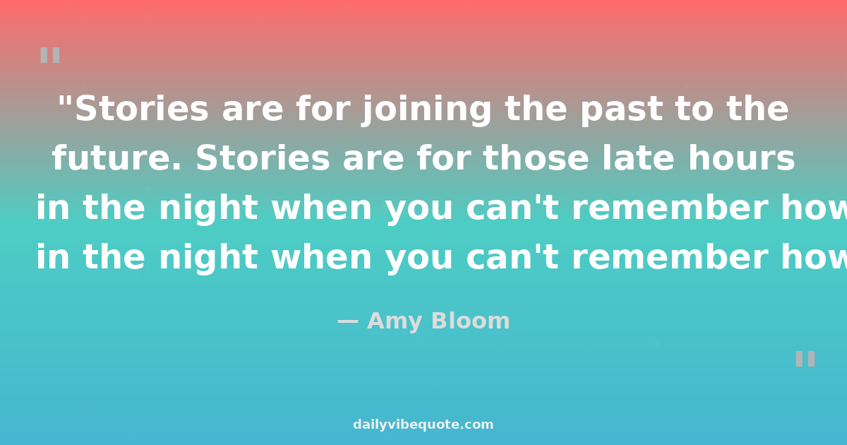 "Stories are for joining the past to the future. Stories are for those late hours in the night when you can't remember how you got from where you were to where you are. Stories are for eternity, when memory is erased, when there is nothing to remember except the story."
