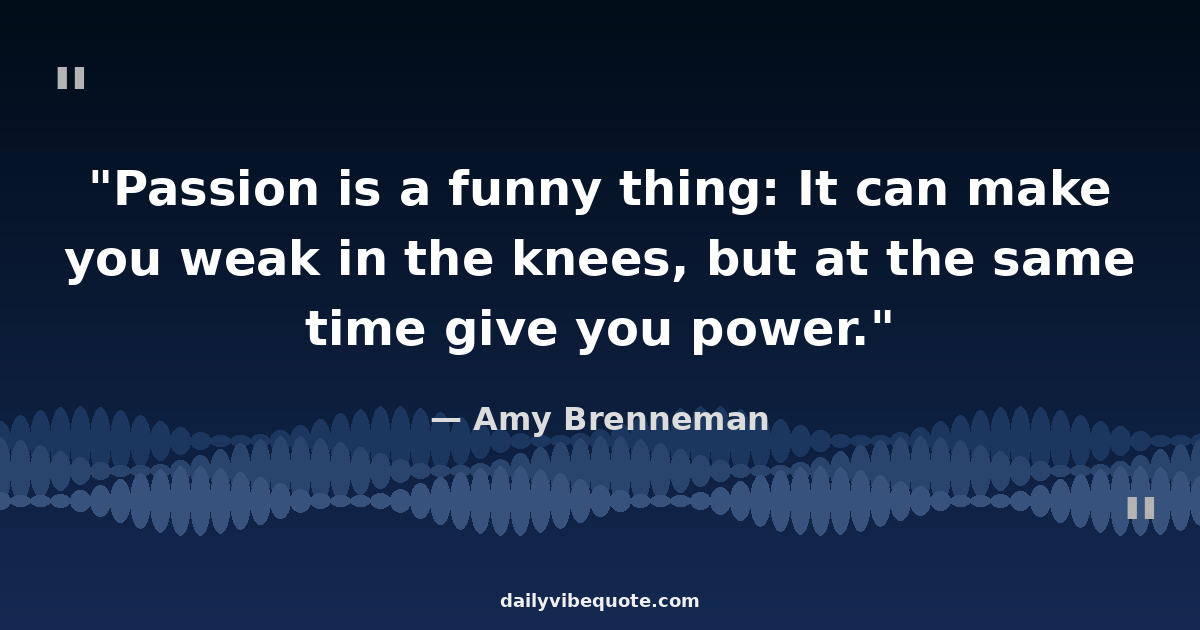 "Passion is a funny thing: It can make you weak in the knees, but at the same time give you power."