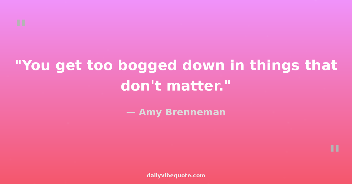 "You get too bogged down in things that don't matter."