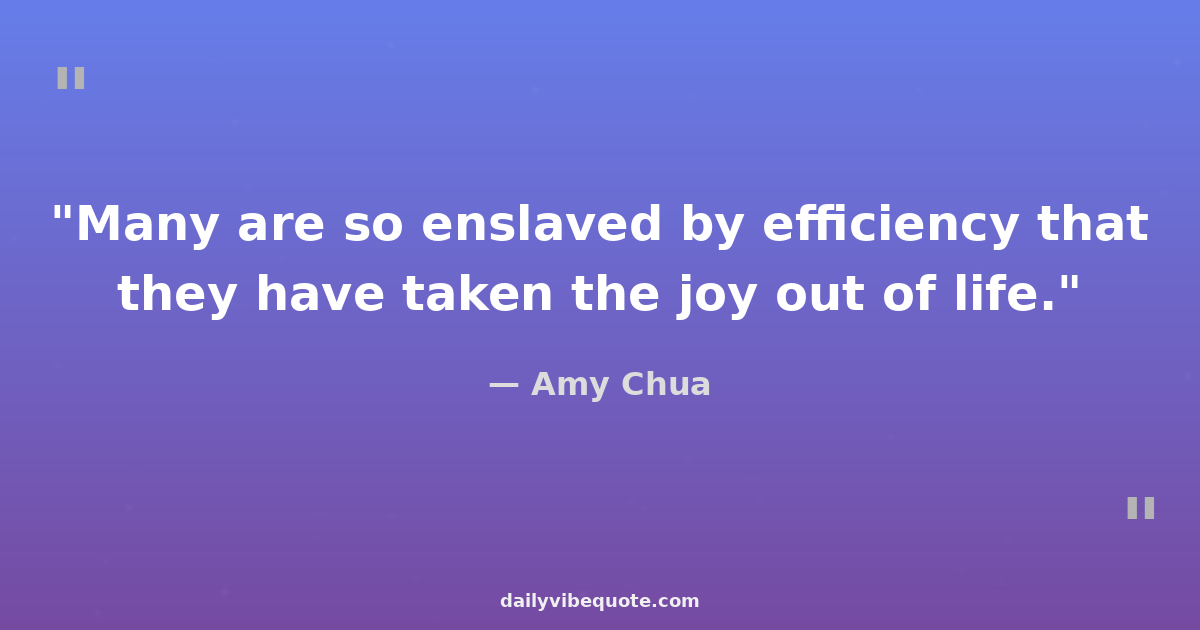"Many are so enslaved by efficiency that they have taken the joy out of life."