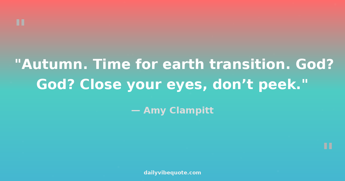 "Autumn. Time for earth transition. God? God? Close your eyes, don’t peek."