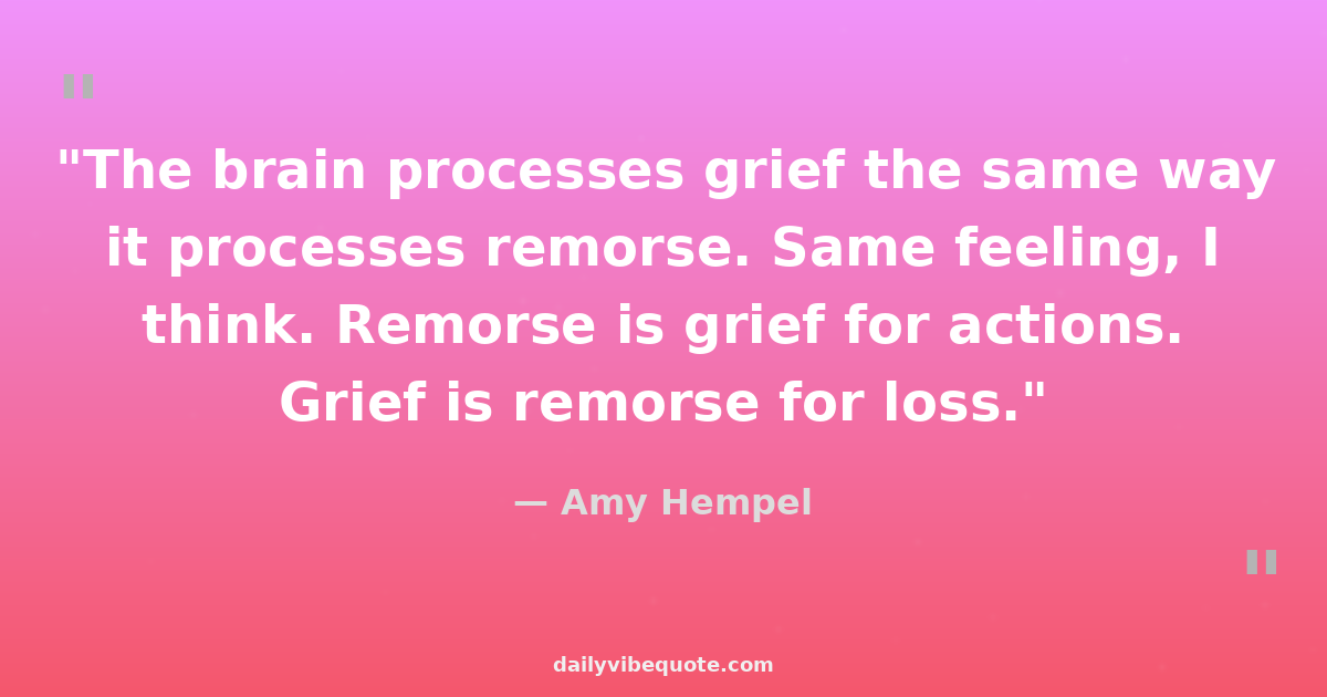 "The brain processes grief the same way it processes remorse. Same feeling, I think. Remorse is grief for actions. Grief is remorse for loss."