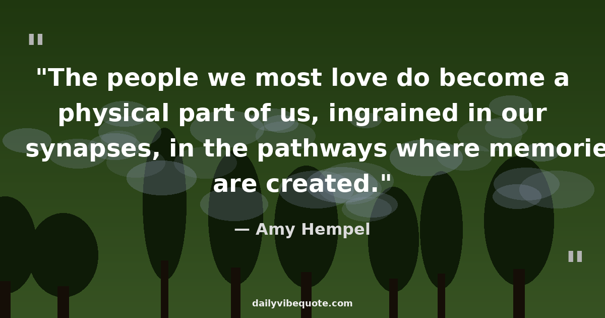 "The people we most love do become a physical part of us, ingrained in our synapses, in the pathways where memories are created."
