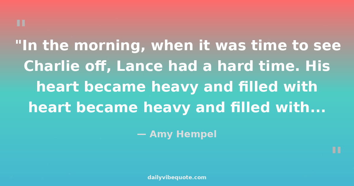 "In the morning, when it was time to see Charlie off, Lance had a hard time. His heart became heavy and filled with stone, not because they had been staying up late and talking, but because they hadn't. Everything was said in the unspoken Greek of men."