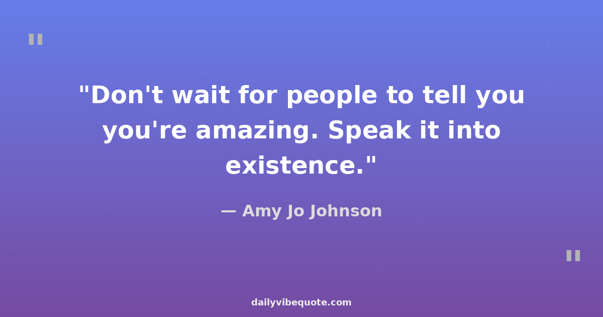 "Don't wait for people to tell you you're amazing. Speak it into existence."