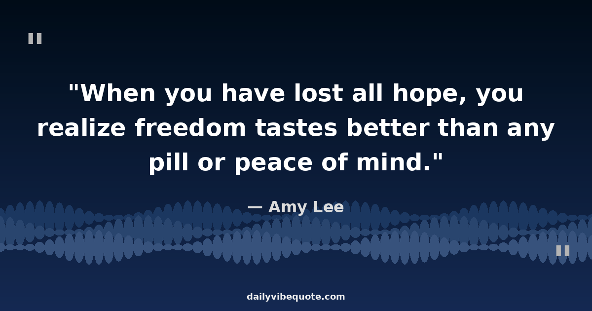 "When you have lost all hope, you realize freedom tastes better than any pill or peace of mind."
