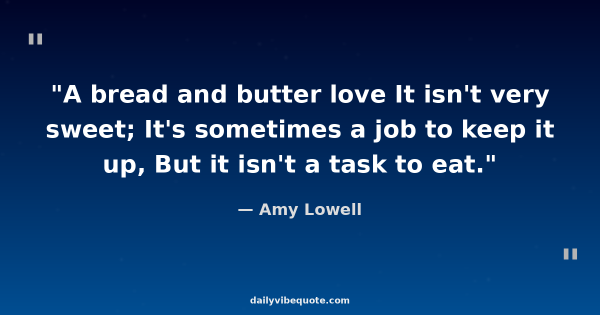 "A bread and butter love It isn't very sweet; It's sometimes a job to keep it up, But it isn't a task to eat."